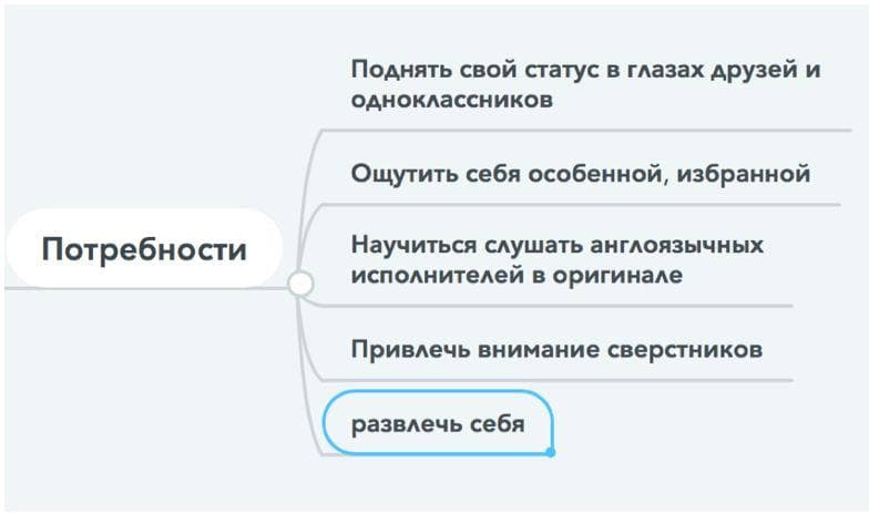 В случае с нашим персонажем конечной целью является не обучение языку, а потребность поднять свой статус среди друзей и одноклассников, ощутить себя особенной, научиться слушать Ариану Гранде в оригинале.