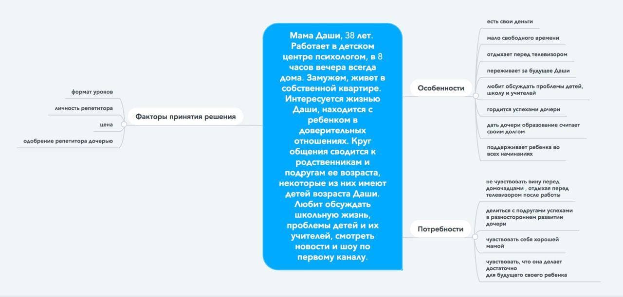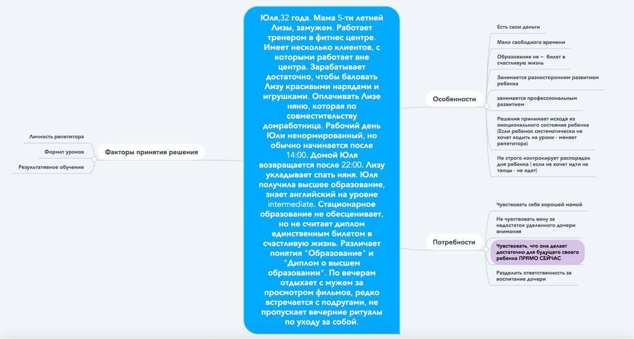 составим майнд-карты персонажей учеников и их родителей из разных возрастных сегментов, с разными потребностями.