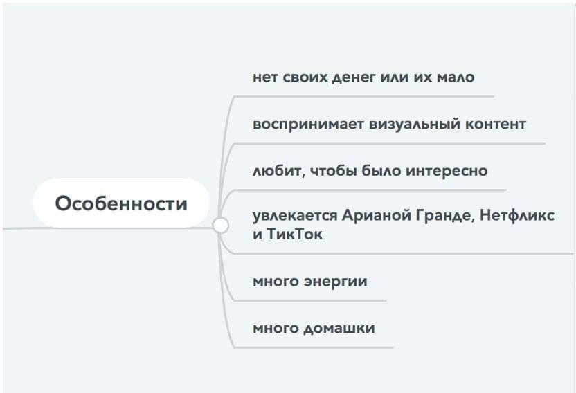 Переносим свойства (формулируем особенности) в майнд-карту: