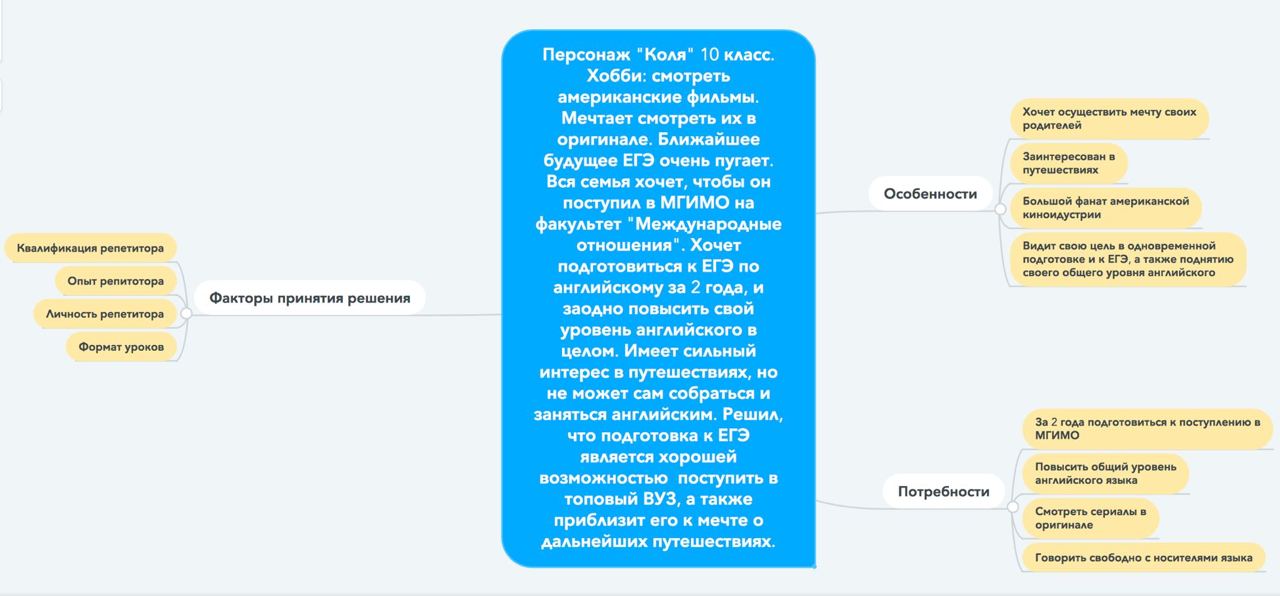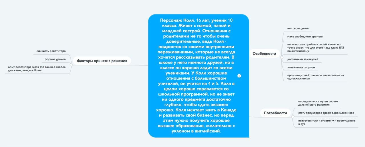 «Персонаж Коля» категория ЦА - старшеклассники 9-11 класс